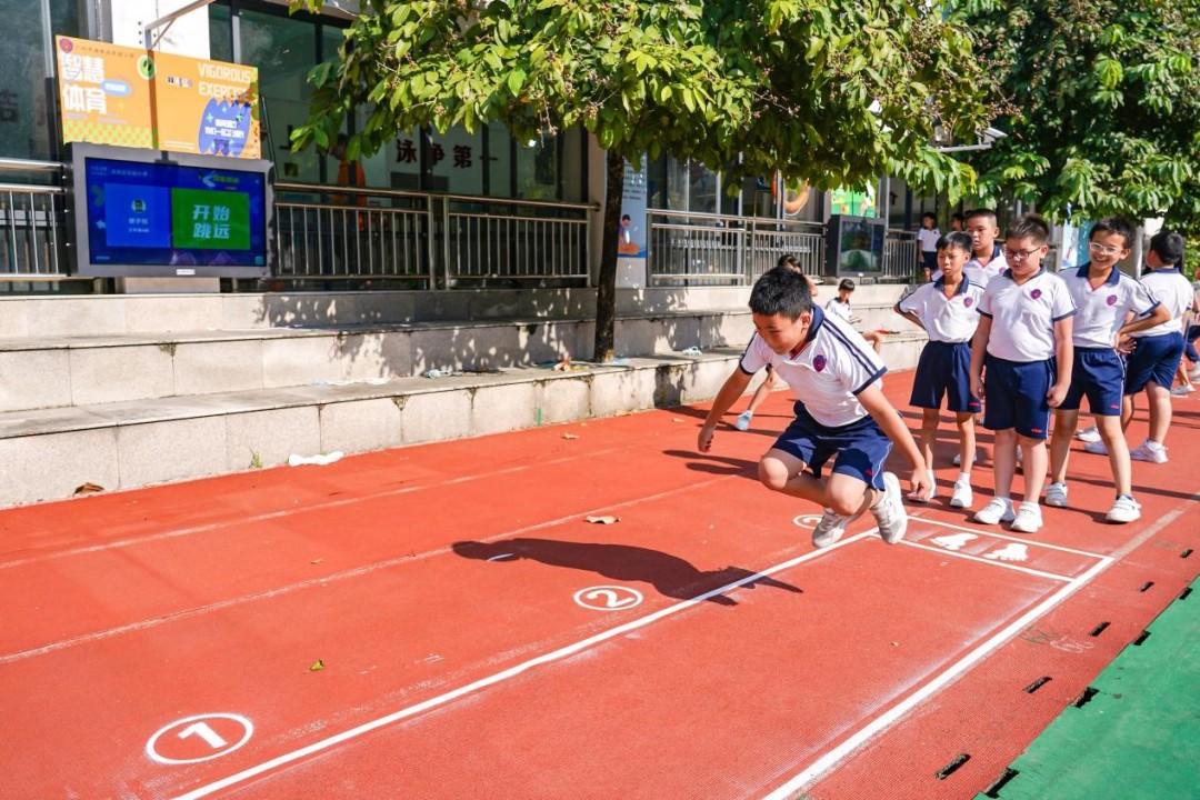 伴随着下课铃响,海珠区实验小学的孩子们嬉笑着跑进操场,有的比赛跑步,有的练习立定跳远,有的比拼跳绳。他们的运动情况被捕捉、记录、统计后上传到云端,进而生成运动排行榜。“哇,你居然比我还快0.1秒!”大家聚在屏幕前,叽叽喳喳讨论着彼此的运动数据。日前,记者在海珠区实验小学看到,从教室、功能场室到操场,数字化学习与活动空间建设渗透在校园多个角落,不仅悄然改变着教与学,也以润物细无声的方式帮助孩子们形成良好的运动习惯。