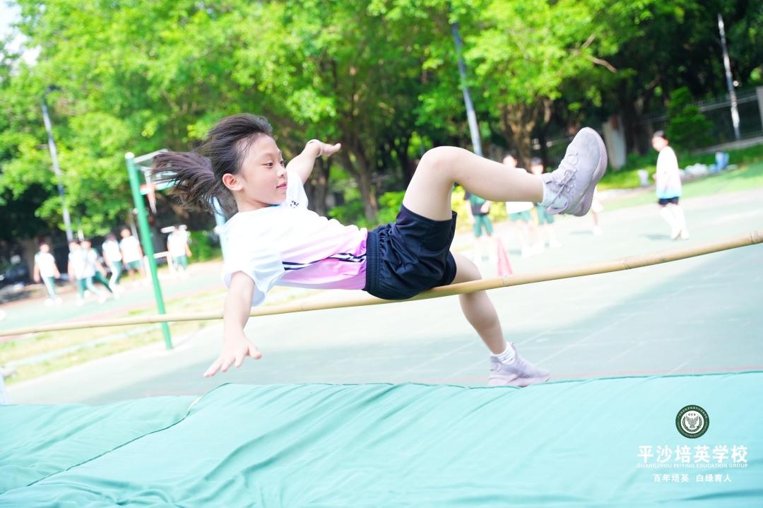 10月16日,广州市白云区平沙培英学校举行第十六届运动会。本届校运会为期3天,以年级为单位开展60米、100米、200米、400米、跳高、跳远、垒球等项目,以及跳长绳、足球绕杆、篮球绕杆、一分钟跳绳等非田径类集体项目。