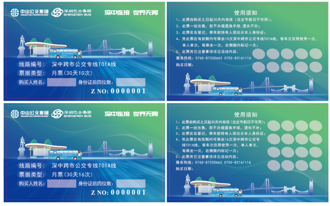 活动首月,中山公交集团与深圳巴士集团特别推出精美的纸质纪念月票,用以作为双城生活的记录载体之一,勾起怀旧情怀。首月期间,市民可到中山博览中心跨市公交枢纽人工窗口、中山国际人才港首末站候车室、深圳前海梦工厂北区公交首末站候车室现场购买纸质纪念月票;在有效期内乘坐票面对应次数及线路的深中跨市公交专线时,须出示本人身份证和手持已购的纸质纪念月票。