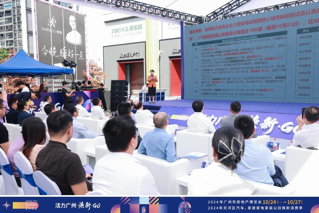 活动现场发布的《2024广州市房地产市场研究报告》显示,国庆后两周(10月7日-20日),广州一手房网签套数连续两周超过2700套,成交规模达到历史高位,成交面积较9月周均增长137%,增幅高于北京(64%)和上海(29%)。