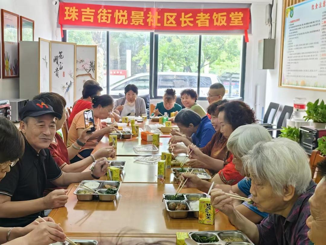 长者饭堂如何持久飘香?杨奇表示,今年以来,为更好提升老年人助餐配餐服务水平,街道探索建立街道、社区、党政机关饭堂、社会组织、共建单位及个人共同推进的大配餐服务机制,打造长者助餐15分钟服务圈,同时建立多元筹资机制,确保服务可持续性。前期,珠吉街道整合社区公建配套用房,腾出100平方米场地,先后投入10万元,按自建厨房标准建成社区长者饭堂,同时按“公益+微利”原则,选取珠吉街道颐康中心承接机构吉山养老院有限公司,自营厨房,为社区长者提供干净卫生午餐。悦景社区通过减免部分水电费,协调共建单位资源解决厨师工资等问题,大大减轻运营压力。此外,社区通过广泛宣传,吸引周边企业、商户等相对固定从业人员到长者饭堂订餐,扩大服务范围。