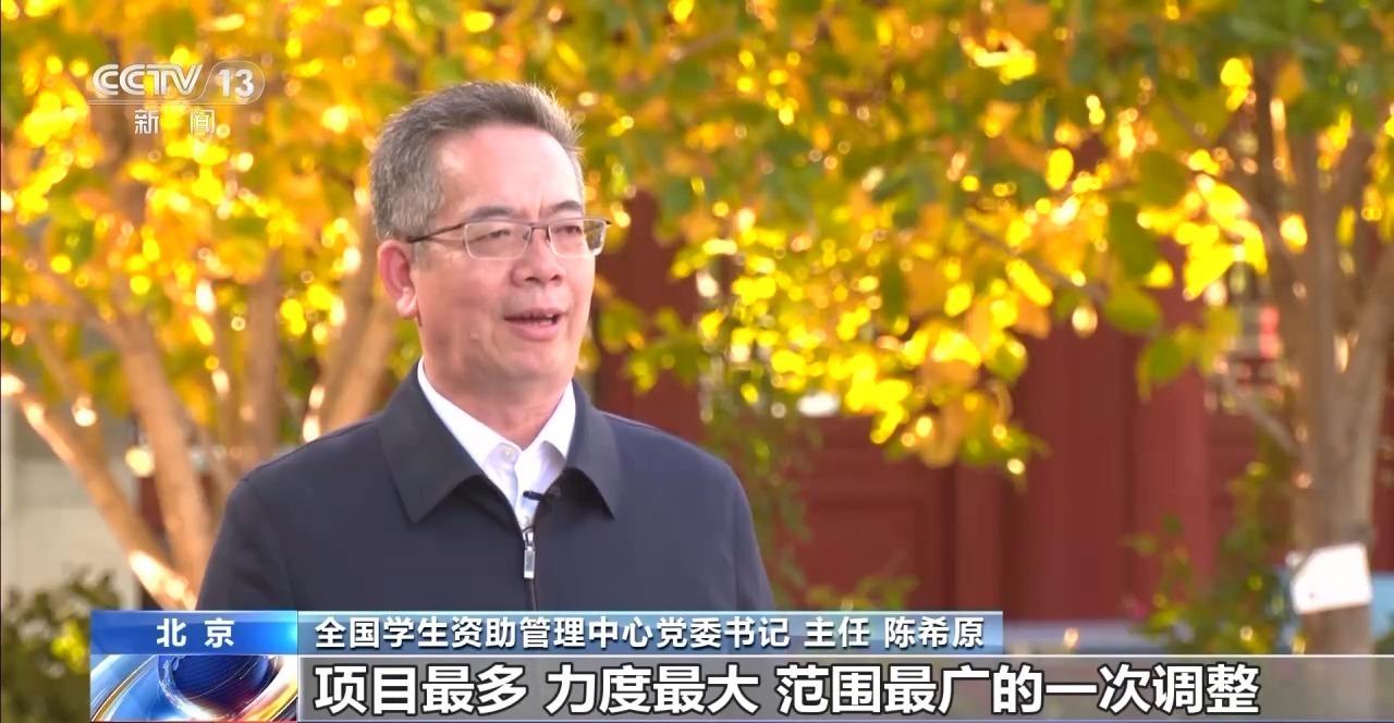 全国学生资助管理中心党委书记 主任 陈希原:这次政策调整统筹兼顾了助困和奖优、提标和扩面、高等教育阶段和高中阶段。这是2007年资助政策体系建立以来,项目最多、力度最大、范围最广的一次调整。