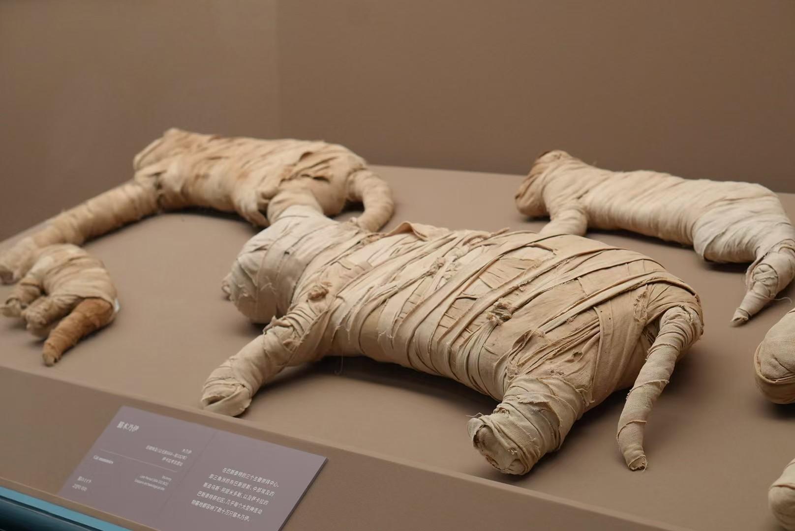 在此次埃及展中,我们还发现了很多可可爱爱的小动物。尤其是在第二展厅“萨卡拉的秘密”中,展厅里不仅布置成了猫神庙的样式,还展出了从众多被麻布包裹的猫木乃伊、猫坐像、猫头雕像等,简直是“喵星人”爱好者的天堂。