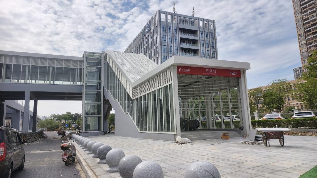 站点紧靠的广清大道新铺设的沥青路面平整而宽阔,不时可见市民骑车经过。站点周边配套的绿化带已然成形,供乘客上下的便捷电梯也已安装就绪。周边市民纷纷表示,对广清城际燕湖站的通车充满期待。一位在附近居住的上班族李先生说道:“看着站点一天天建设完善,我们都特别兴奋。广清大道的新面貌也让人眼前一亮,等城际通车后,我们去广州通勤就更加方便快捷了,这将大大节省我们的时间成本。”
