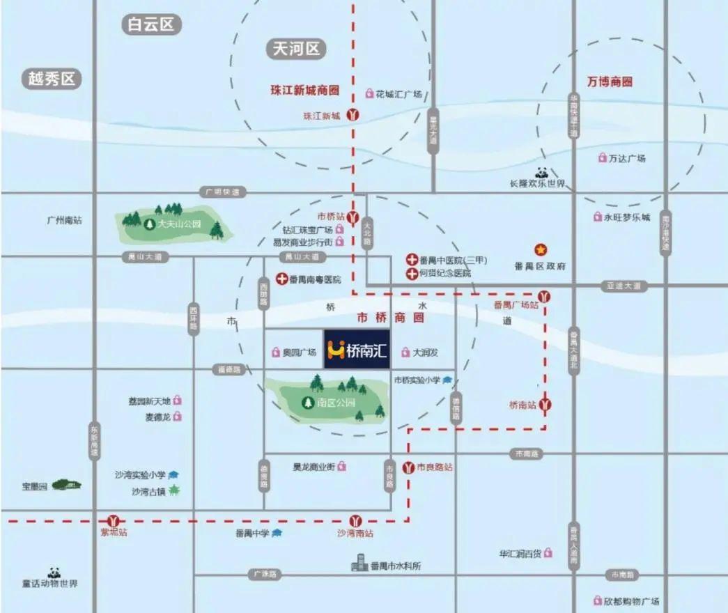 广州番禺·桥南汇项目位于广州市番禺区桥南街南华路与南城路交会处(具体地址:广州市番禺区桥南街南城路181号),是集游逛体验式集中商业街区、星级酒店、总部办公于一体的10万㎡商业综合体。烟火与活力、潮流与美学在此汇聚,提供沉浸式主题游逛空间,为市民带来全新体验。
