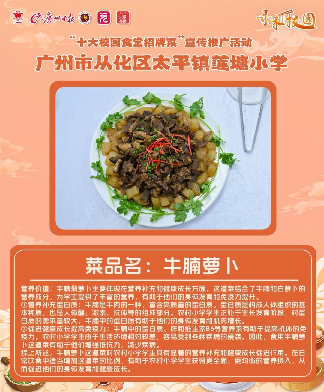 以下为获得“十大校园食堂招牌菜”称号的小学组菜品: