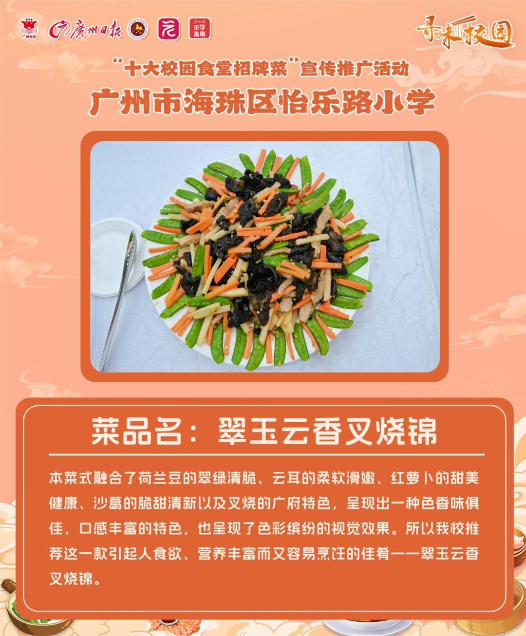 今年9月,2024“寻味校园”十大校园食堂招牌菜宣传推广活动在广州市旅游商务职业学校(新滘西路校区)举行。此次活动,活动方评选出来自广州市多所中小学和幼儿园的多道“招牌菜”,并以此活动为“媒介”,进一步宣传推广学校食品安全和膳食营养知识。