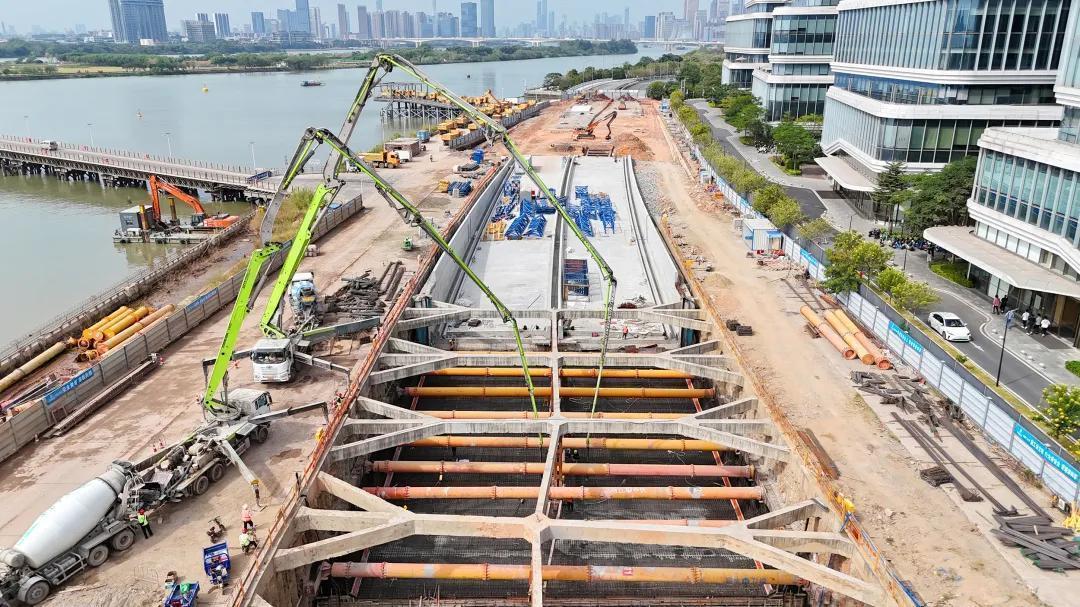 近期,广州黄埔区一个重要交通要道有了新进展,临江大道(鱼珠湾隧道)长达345米的敞开段底板工程全部顺利完成,为隧道的早日通车奠定了坚实基础。
