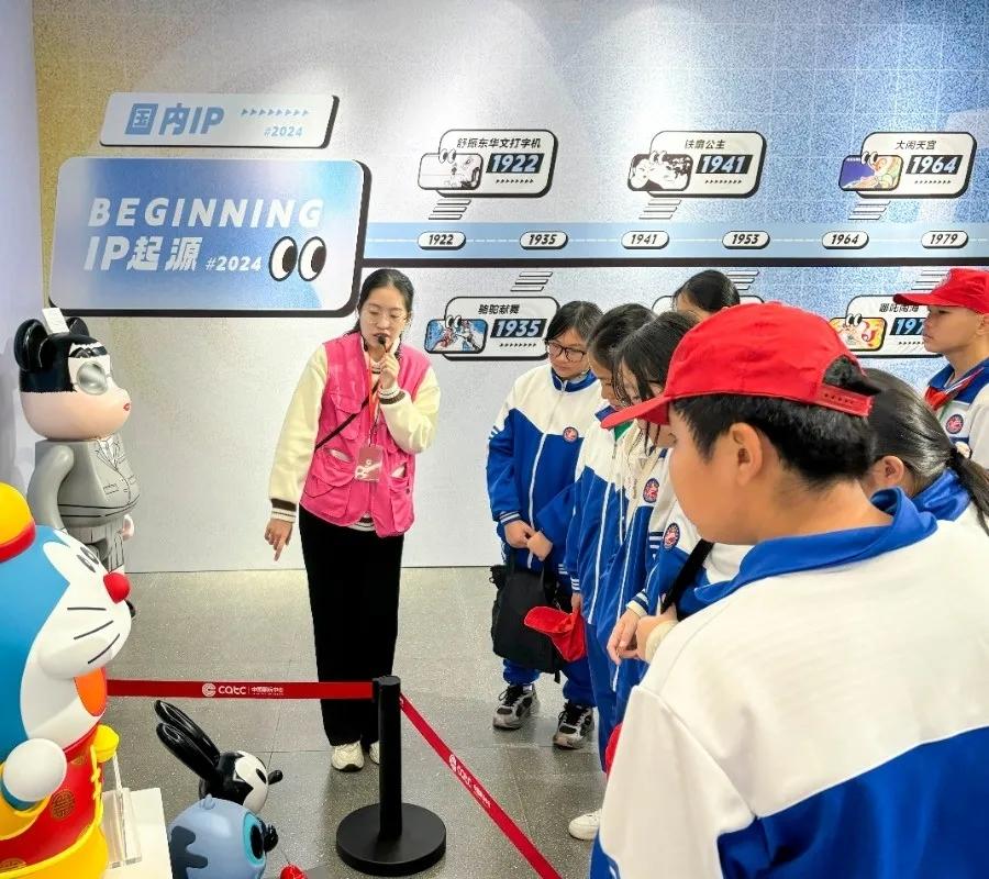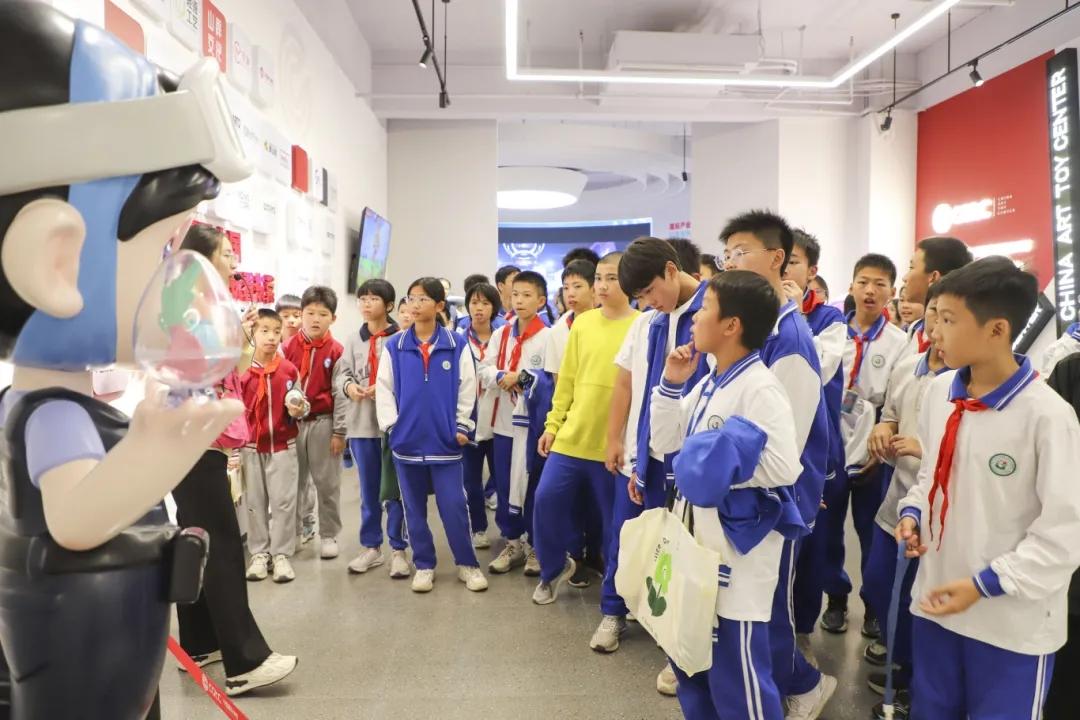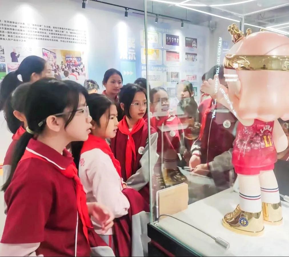 通过讲解员生动的讲解,学生们对潮玩知识、潮玩发展史、东莞本土原创潮玩IP等情况有了初步的认识和了解。