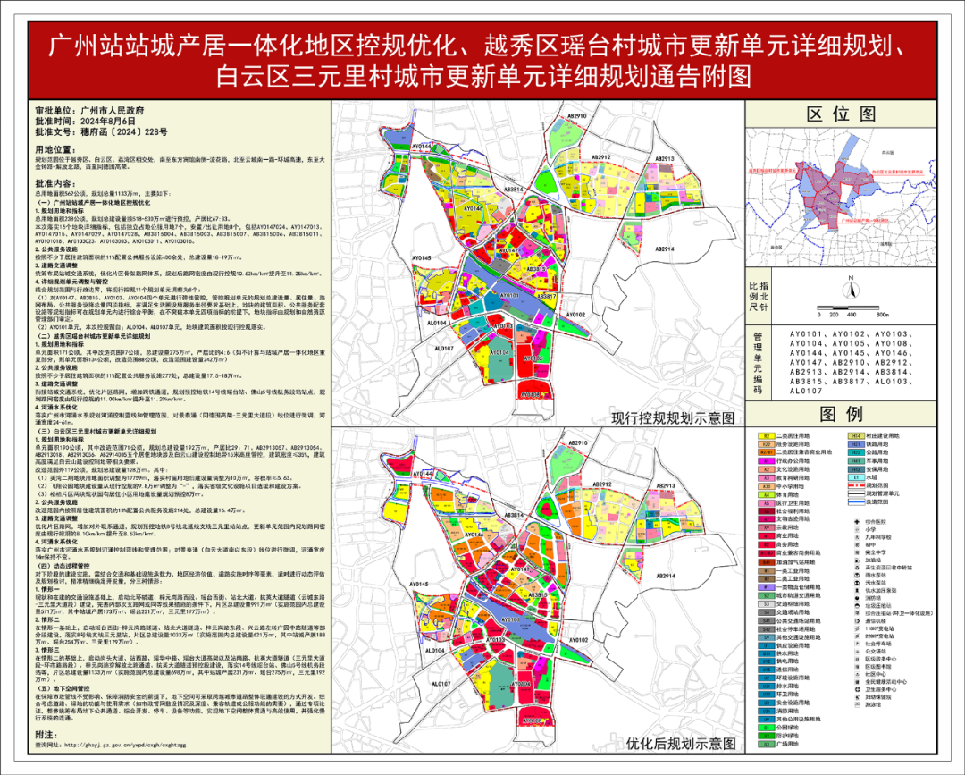 瑶台村位于越秀西北部,属于广州火车站站城产居一体化延伸区,包括瑶台、王圣堂、沙涌南3条自然村,按照“拆除新建”方式实施改造,改造范围97公顷,现状建筑面积202万平方米,规划总建设量275万㎡。