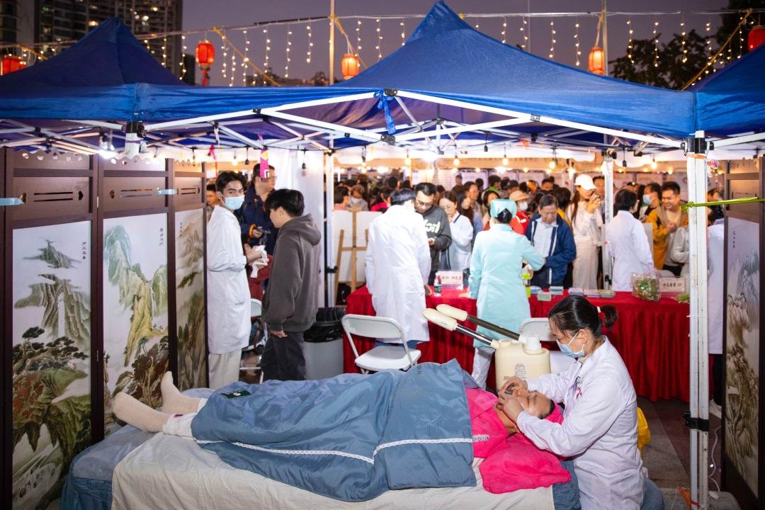 名医家门口义诊,品中药特色茶饮,体验雷火灸、刮痧、耳穴压豆,膏方现场熬制,辨识常见中药材,学习中医养生知识……11月29日,“魅力天河,国潮中医——天河区首届中医药文化夜市暨广州市天河区中医医院第三届膏方节”在天河公园启动。