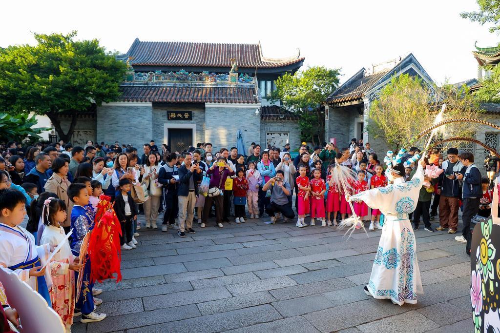 据了解,荔湾区近年来积极推动粤剧粤曲(荔湾)文化生态保护实验区建设,促进粤剧粤曲艺术的创造性转化、创新性发展,逐渐形成“红豆生辉”青少年粤剧粤曲展演、穗港澳粤剧日、“粤韵同声”粤曲展演等品牌,持续鼓励各地青少年广泛参与,支持参赛作品创新融合,吸引不少青少年接触粤剧、了解粤剧、热爱粤剧。本次活动也是广府童谣嘉年华系列活动之一,其中“粤韵巡游”成为一大亮点。区别于以往的室内展演,这次活动加入“巡游”形式。巡游队伍沿着荔枝湾涌一路行进,“小红豆们”在多个地点进行定点表演,吸引不少市民游客驻足拍照。