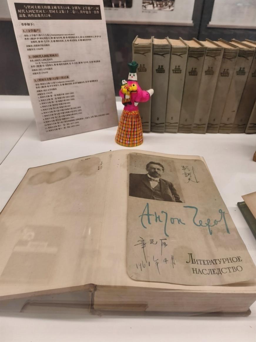 据悉,本次展览共展出82幅关于契诃夫生平事迹的照片、通信信件等图片。图片翻译及校对工作由主办方之一广东外语外贸大学西方语言文化学院23级俄语口译专业硕士研究生完成。观众在欣赏图片的同时,还可在配套书展区域翻阅中文、俄语、英语等不同版本的契诃夫作品,展出书目包括广州图书馆副馆长刘平清珍藏的14本与契诃夫相关的1960年出版的俄文藏书,如《同时代人回忆契诃夫》《契诃夫文集(十二卷)》等。