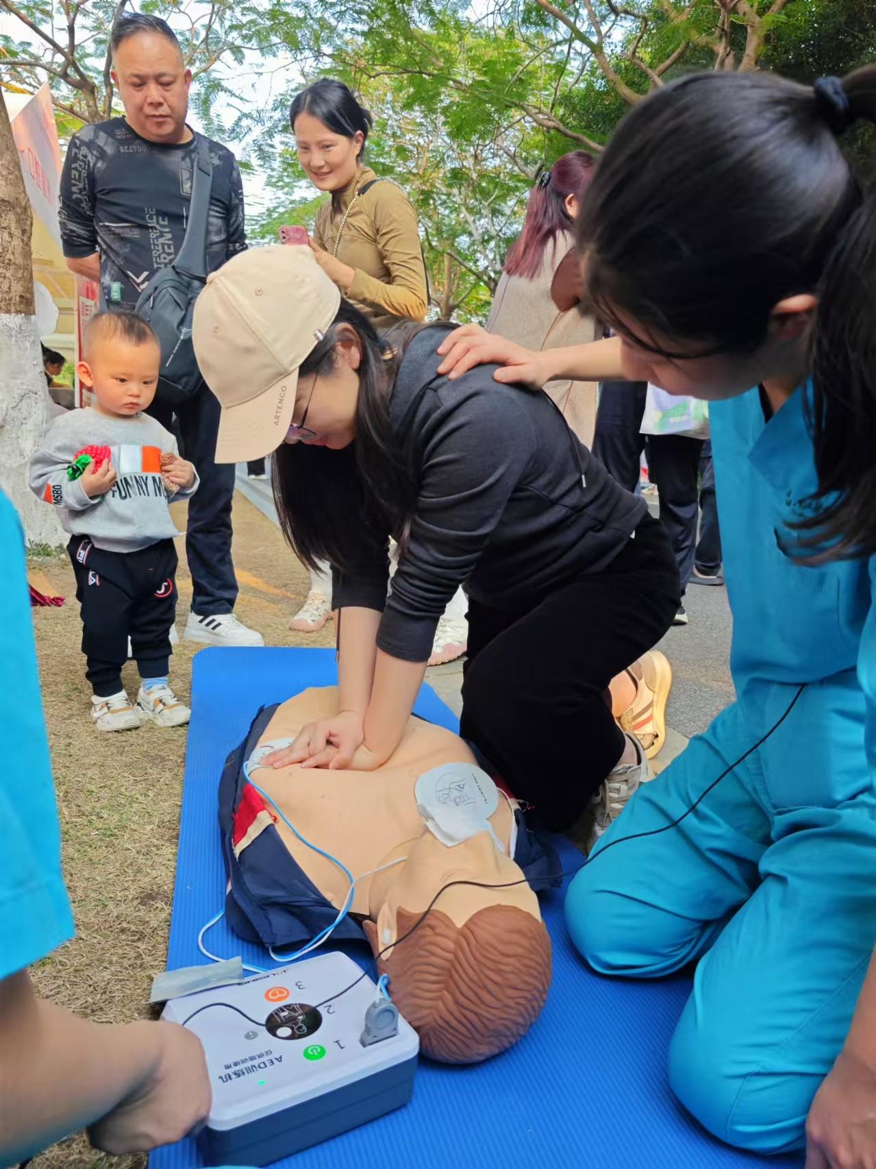 “您的血压检查正常”“日常生活中要提防这些诈骗陷阱”……同一片草坪上,“我为群众办实事”青年文明号志愿服务集市在如火如荼地开展,吸引了众多市民群众驻足参与。该志愿服务集市设置了禁毒防诈宣传、应急安全知识讲解、爱心义诊与急救培训、护牙科普、漆扇制作等丰富多彩的服务摊位。