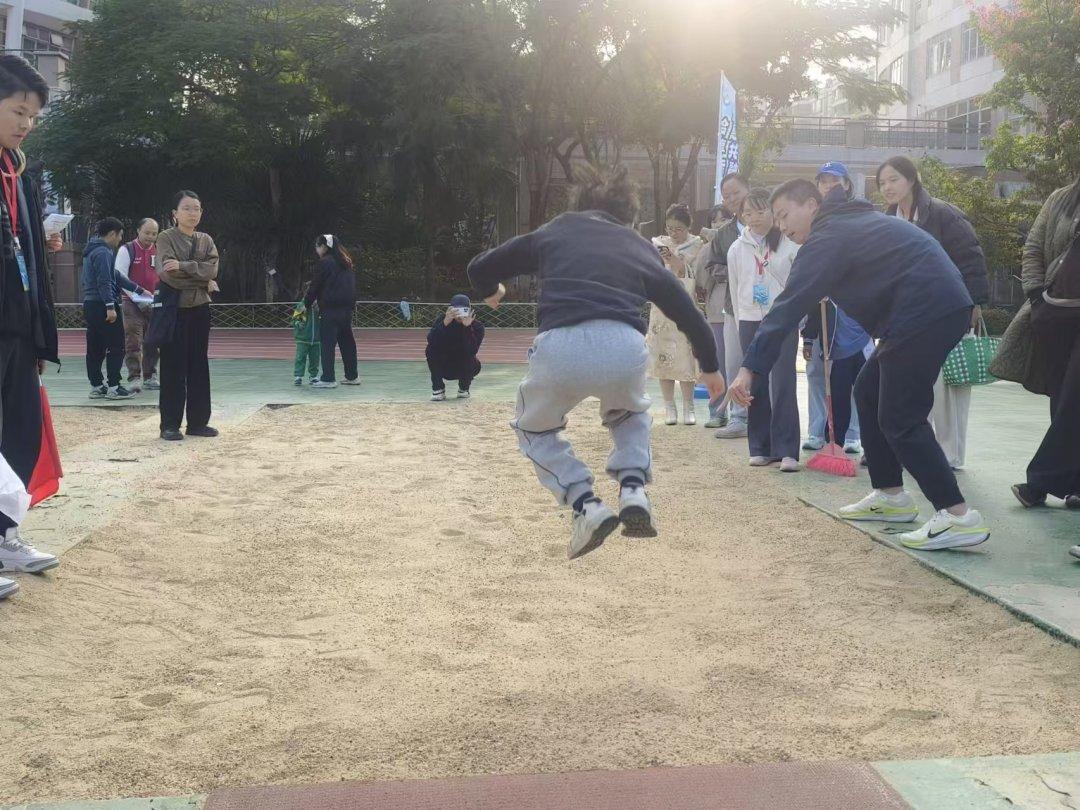 运动场上,赛事激烈而精彩。个人项目包含考验速度与爆发力的 50米跑、比拼弹跳力的立定跳远,以及讲究技巧与力量的沙包投掷;团体项目的8*50米接力跑中,一棒接一棒传递的不仅是赛道上的接力棒,更是同学间的信任与默契;同舟共济项目里,大家齐心协力,为团队荣誉奋勇向前。赛场上,特殊学生全力冲刺、咬牙坚持,融合伙伴暖心鼓励、全力配合,每一个瞬间都彰显着融合的魅力。