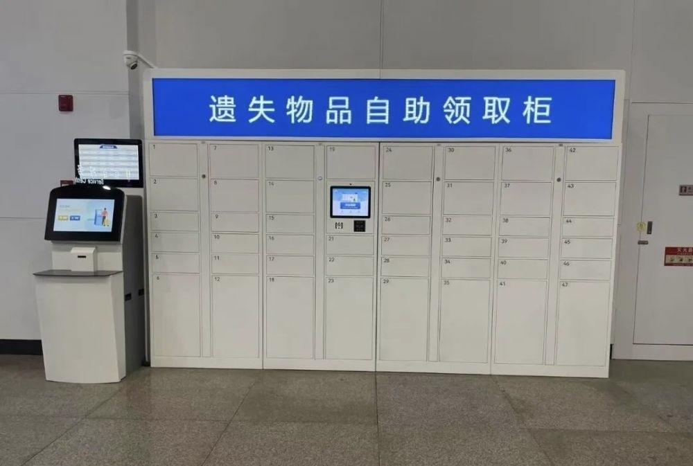 遗失物品招领处设有人工服务柜台,以及遗失物品自助领取柜,位于综合服务中心最右侧,位置显眼,方便有需要的旅客办理相关业务。