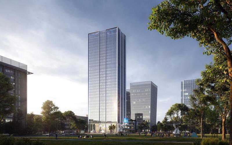 建筑形象上采用“银河”的设计理念,银色金属竖向线条,勾勒出现代科技感十足的现代办公建筑形态。项目总建筑面积约7.6万平方米,由一栋塔楼、裙房和三层地下室组成。项目预计2025年主体结构封顶,2026年按期交付使用。