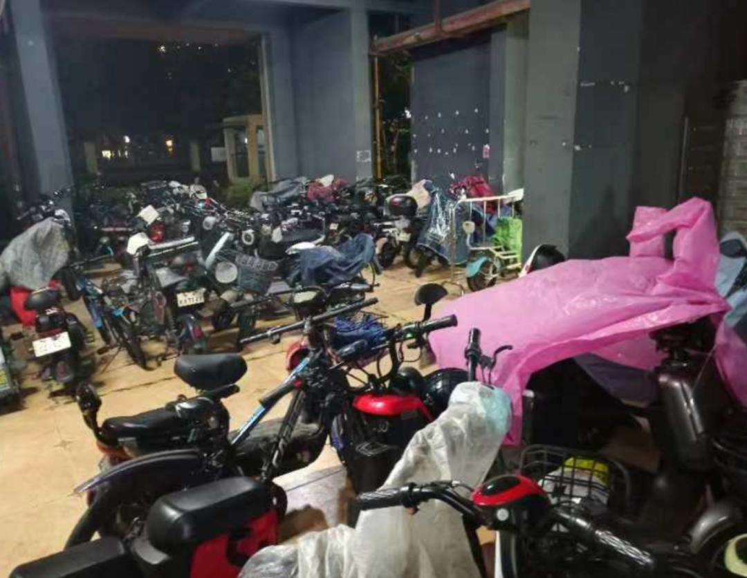 黄埔区佳兆业城市广场保障房位于黄埔区开创大道与黄埔东路交汇处,归属康南社区管理。该项目建成编号17栋-21栋共5栋保障性住房,常住人口近5000人。随着近年来电动自行车使用需求日益增加,此处居民电动自行车动态保有量近2200台。因园区前期设计未设置非机动车停放点,电动自行车停放在架空层、主要出入口、绿化地的现象非常普遍。