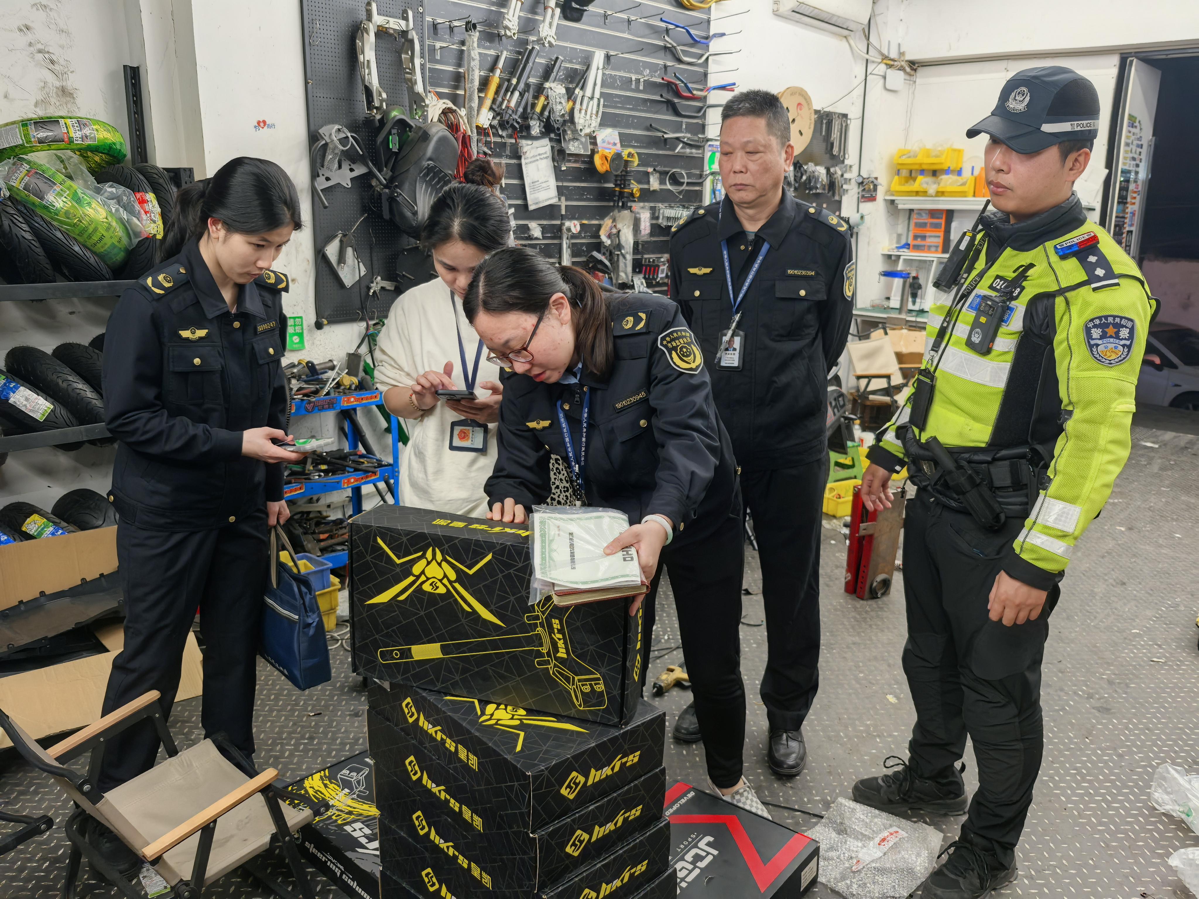 现场检查中,执法人员发现某电动自行车门店(广州某牛配件有限公司)在抖音和小红书平台上发布电动自行车改装的相关信息,现场还发现假冒厂名厂址以及无合法来源的电动自行车零配件一批。执法人员对涉案物品进行扣押,依据《广州市电动自行车管理规定》等规定对当事人涉嫌在网络传播非法改装电动自行车信息以及销售无合法来源、假冒厂名厂址的电动自行车零配件等违法行为立案查处,并对店主进行严肃的批评教育,重申非法改装电动自行车的危害。