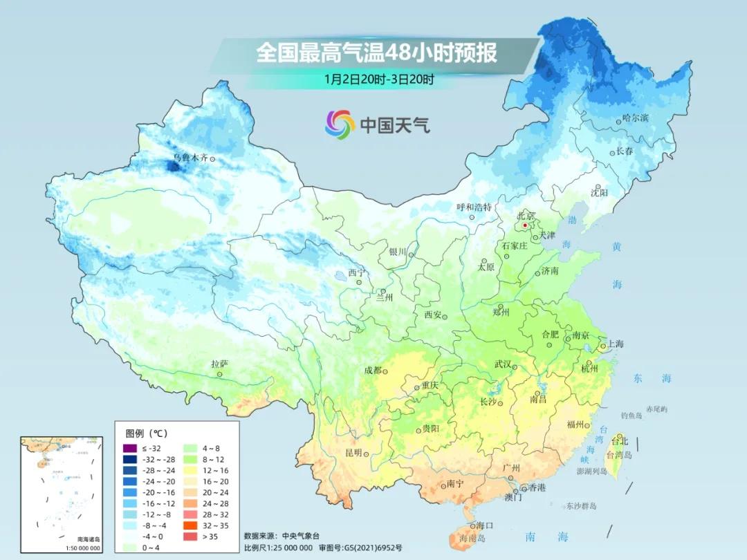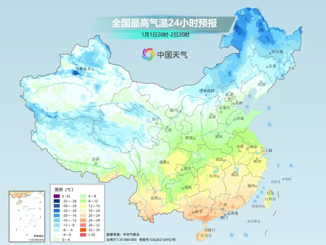 1月1日至3日,将有一股弱冷空气影响中东部地区,以大风降温为主,无明显雨雪天气。内蒙古中东部、东北地区等地部分地区有4级左右、阵风6~7级的偏北风,局地阵风8级;气温下降4~6℃,内蒙古东北部、黑龙江局地等地降温8℃左右,南方地区降温2~4℃。