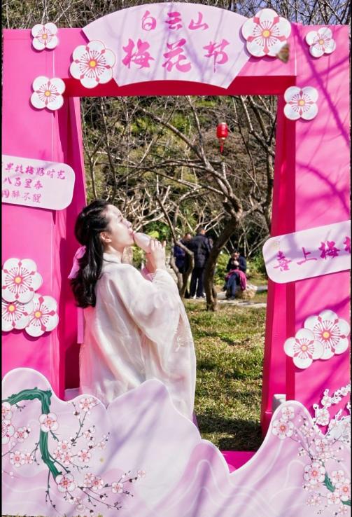 同时,一场以“梅花三弄,奇遇雅事”为主题的白云山梅花节正在这里举行。不仅可以欣赏到梅花的美丽与坚韧,更能体验到一场穿越时空的文化之旅:抚琴、诗词、对弈、品茗……古人十雅之事在此重现,让你仿佛置身于那个风雅的时代,与古代文人墨客共话梅花的韵味与品格。现场特别开设了官方文创店,提供了一系列特色服务:汉服旅拍、十雅印章、梅花主题印章等。
