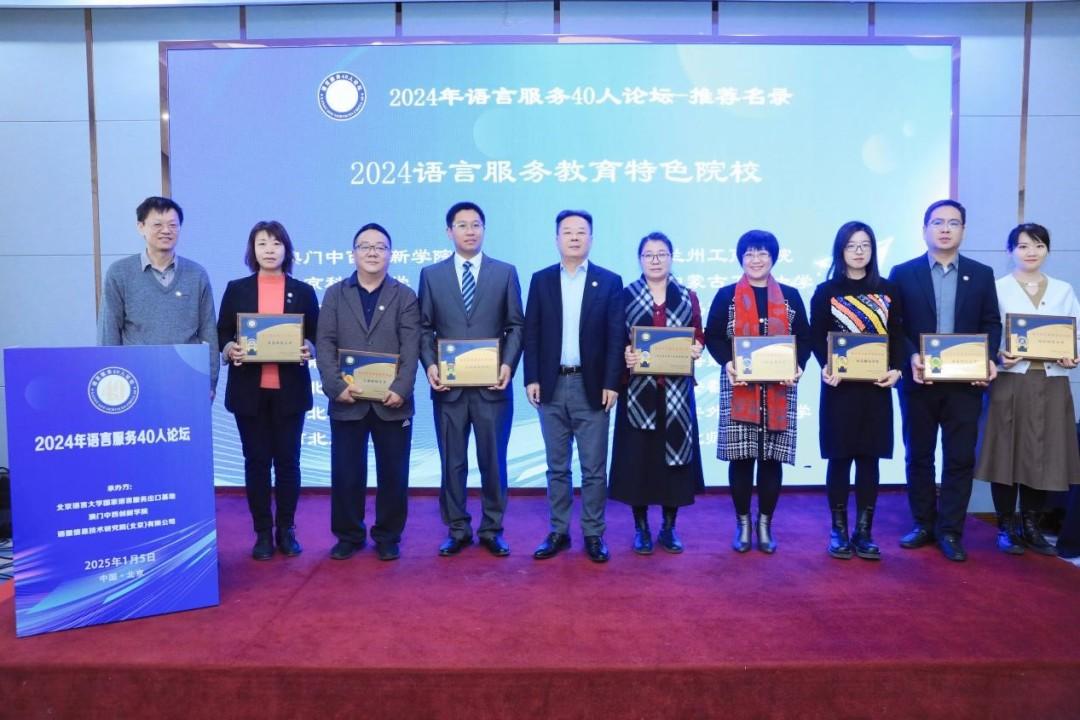 1月5日,2024年语言服务40人论坛在北京举行。本次论坛由语言服务40人论坛主办,澳门中西创新学院、北京语言大学国家语言服务出口基地及语服信息技术研究院(北京)有限公司联合承办。凭借在语言服务人才培养、课程体系创新以及实践教学成果方面的卓越表现,澳门中西创新学院在论坛上荣获“2024语言服务特色院校”称号。
