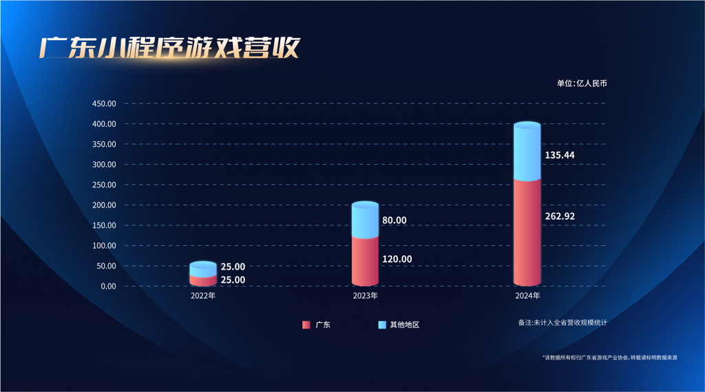 值得一提的是,2024年广东省小程序游戏营收规模达262.92亿元,同比增长119.1%,小程序游戏赛道成为“创业新蓝海”,而广州在中国小程序游戏百强企业榜中上榜企业28家,数量位居全国第一。