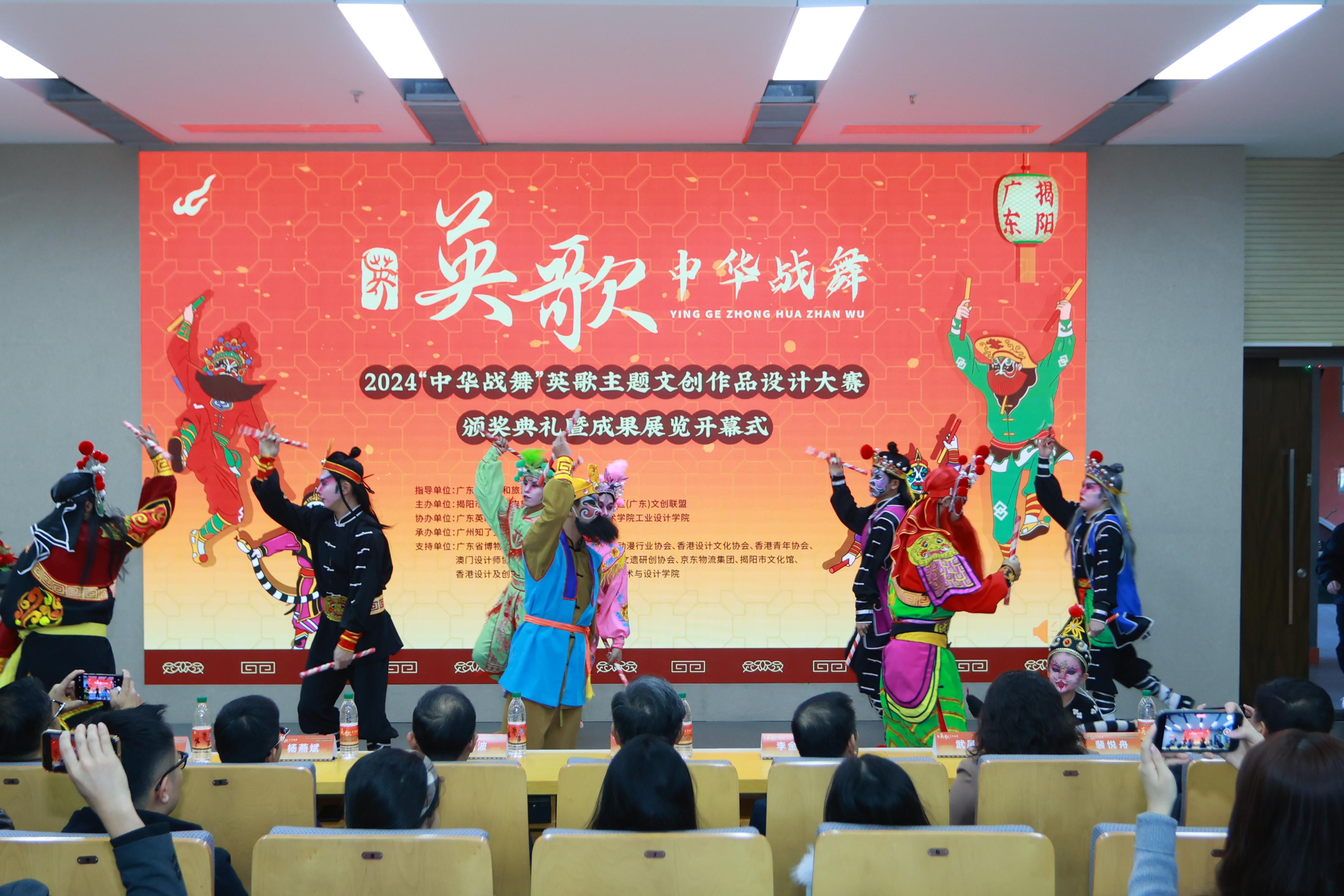 1月3日,由广东省文化和旅游厅指导,揭阳市文化广电旅游体育局、粤港澳大湾区(广东)文创联盟主办的“中华战舞”英歌主题文创作品设计大赛颁奖仪式暨成果展在广州美术学院(大学城校区)举行。