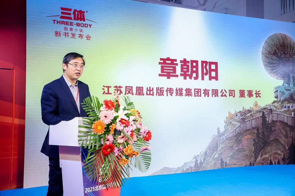 1月9日下午,《三体》图像小说新书发布会在中国国际展览中心举办,凤凰出版传媒集团董事长章朝阳、三体宇宙CEO赵骥龙、杰森娱乐集团董事长林俊、《三体》图像小说作者吴青松等嘉宾出席本次活动,译林出版社社长葛庆文担任主持。