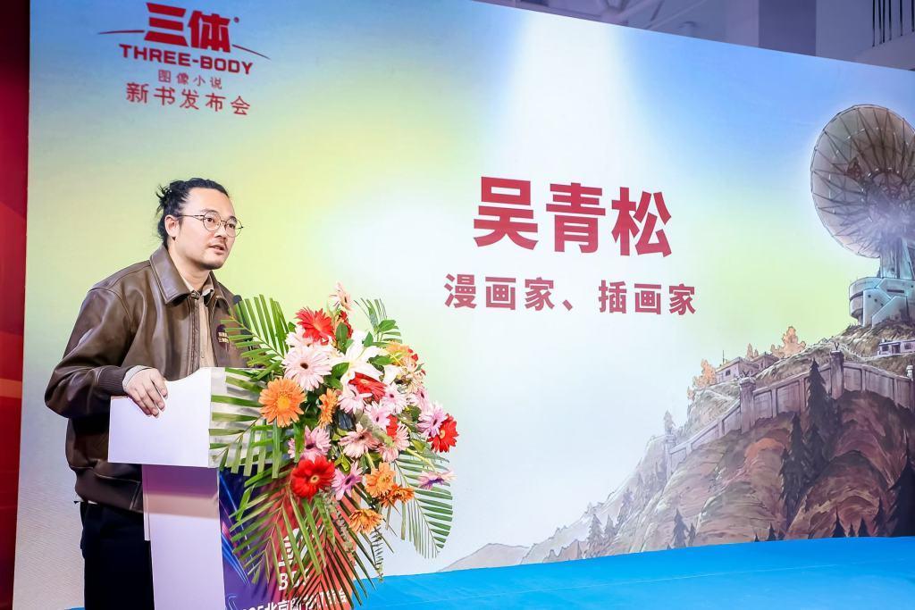本次出版的《三体》图像小说作者吴青松是我国著名国风漫画家,曾凭借一卷《山海戮》便摘得有“中国动漫奥斯卡”之称的中国动漫金龙奖。2019年,三体宇宙与其商谈图像小说改编事宜。回忆起这段往事,吴青松称自己是个“三体迷”,从《三体》连载时就一直追更,收到创作邀约时也曾一度犹豫,害怕自己的能力不足以驾驭如此庞大的故事;但是“不画肯定会后悔”的强烈意愿促使他接下了这个项目。
