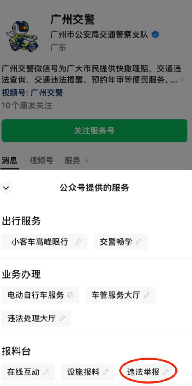 广州交警介绍,广州交警微信公众号的“违法举报”模块提供了“随手拍”和“视频·离线上传”两种举报方式,市民如收集到符合举报要求的交通违法行为证据线索,可通过广州交警微信公众号,点击进入“违法举报”界面,按指引提交交通违法行为证据线索。