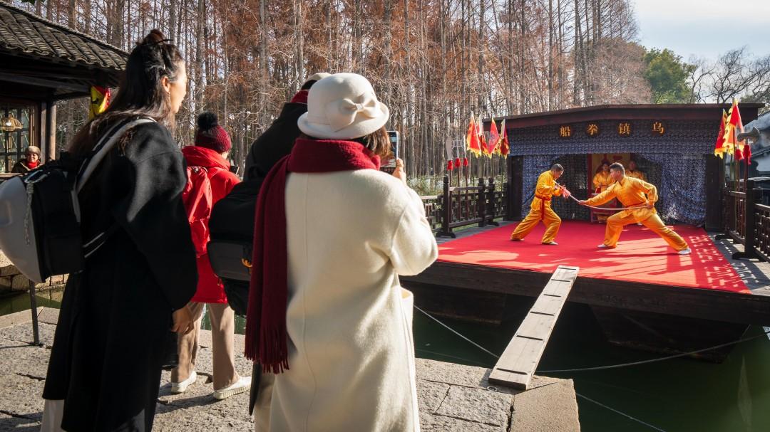 乌镇一直注重保护传承非遗。2025年春节,是“春节——中国人庆祝传统新年的社会实践”列入联合国教科文组织人类非物质文化遗产代表作名录后的首个春节。乌镇融合水乡非遗,打造“非遗年”,推出系列活动。