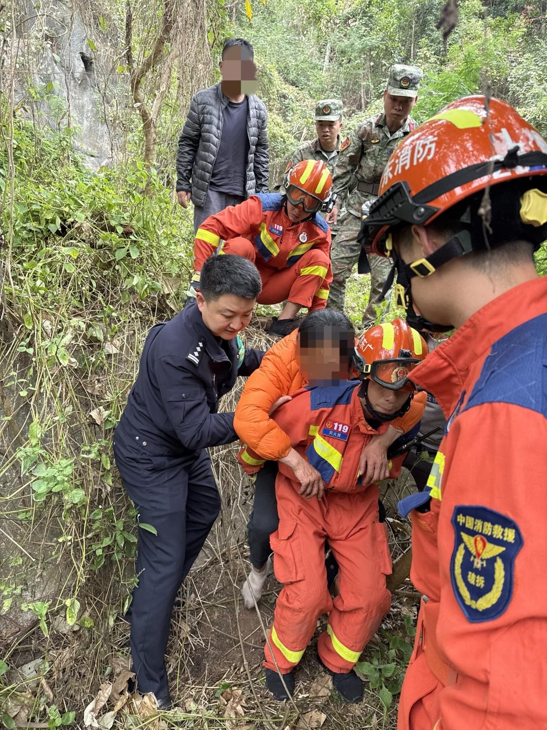2月1日早晨,天空下起了小雨,山路湿滑,多路警力和救援力量克服困难,相互鼓励,相信老人就在前方。