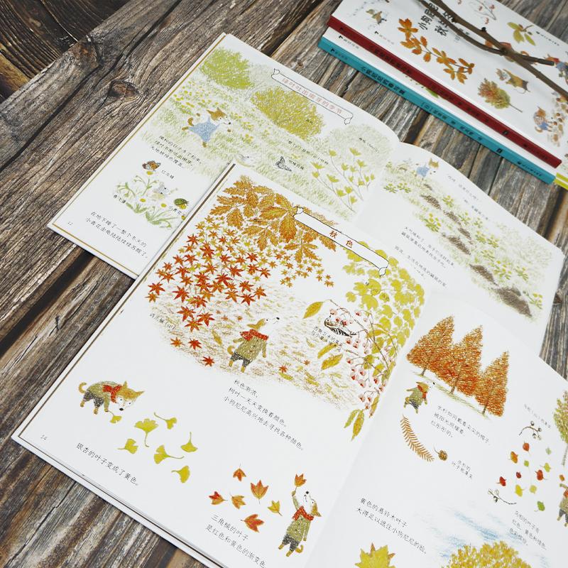 在治愈绘本《小狗尼尼的春与夏》和《小狗尼尼的秋与冬》中,作者秋草爱把四季画得到处都是不期而遇的美丽和惊喜。这两本书的亮点之一就是:给所有的动植物插画,直接在画中标记了名字。燕子们在筑巢,云雀们在捉虫子,野鸡在求爱。植物们不再是匿名的绿色,动物们也不再只是被笼统称作“鸟儿”的群体。它们都变成了有了名字的朋友。