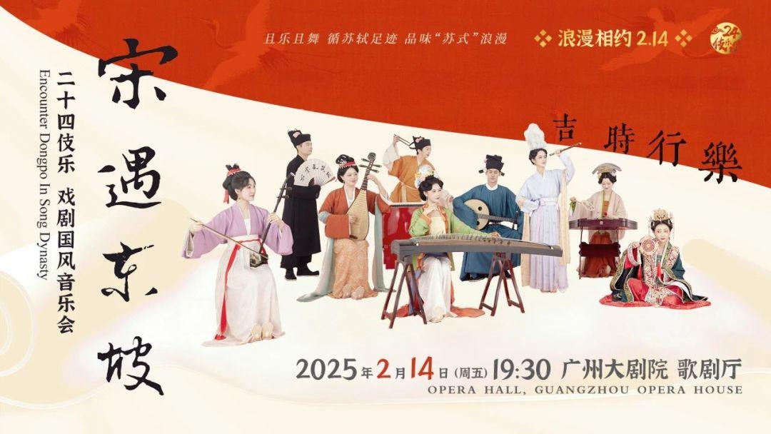 中式美学持续升温!2月14日晚,戏剧国风音乐会《宋遇东坡》将登陆广州大剧院歌剧厅。二十四伎乐国风乐团将带你走进历史,共赴一场诗乐共舞的人间惊鸿宴。