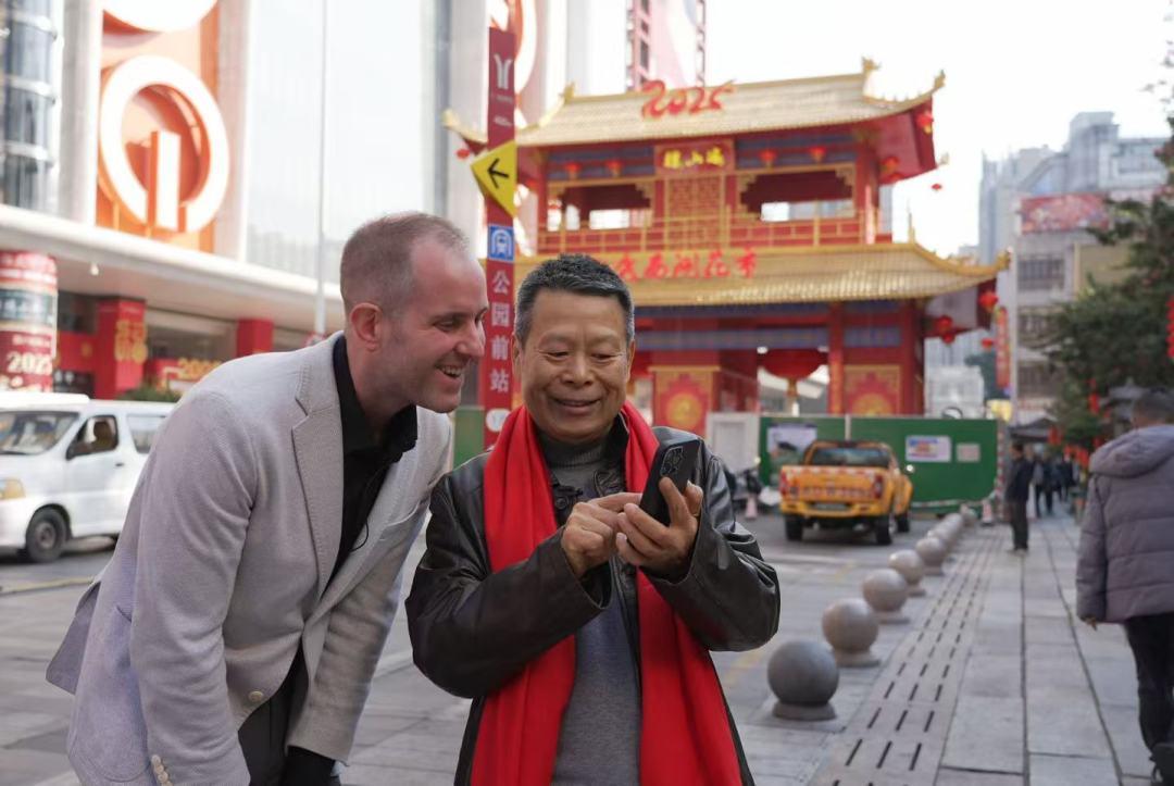 作为有160多年历史的迎春花市,西湖路花市不仅是广州人辞旧迎新的仪式感,更是一部用鲜花写就的城市编年史。《行花街》突破传统非遗纪录片的表达框架,特邀法国友人雨果担任讲述者。这位能说流利汉语、熟稔广府生活的“老广”,以“局内人”的共情与“外来者”的敏锐,带领观众深入花市肌理:在花农的花场里,他记录下花农用体温保护年桔挂果的细节;在采访花商的过程中,他发现卖花背后暗含的广府商业伦理;当镜头转向拍摄花市三十载的摄影师李全新时,那些历年花市变迁的影像,恰是改革开放浪潮下广州城市变迁的鲜活注脚。