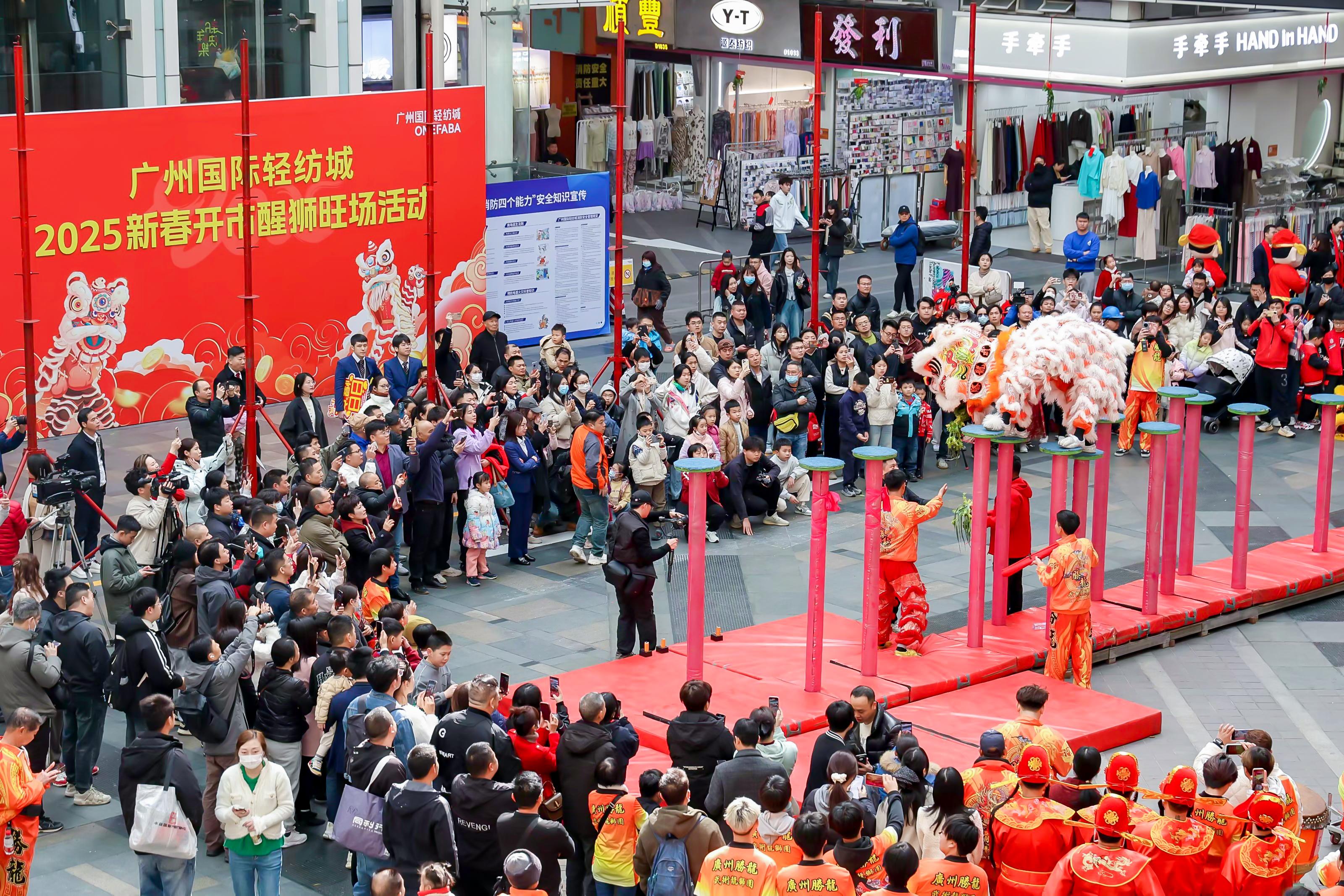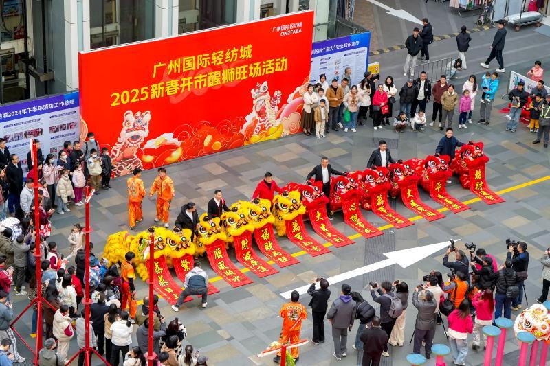 信息时报讯(记者 卫静雯)2月9日上午10点,广州国际轻纺城举行2025新春开市醒狮旺场活动。作为中大纺织商圈每年启市的“开年第一戏”,今年的活动有来自广府8大狮队的178头精锐雄狮齐聚一堂。鼓乐齐鸣、声震云霄、百狮欢腾的火热景象,为乙巳蛇年商圈的人气商气财气畅旺打响头炮、抢下头彩,敲响了充满祥瑞喜气与蓬勃活力的洪亮序章,开启了生生不息、巳巳如意的高质量发展之年。
