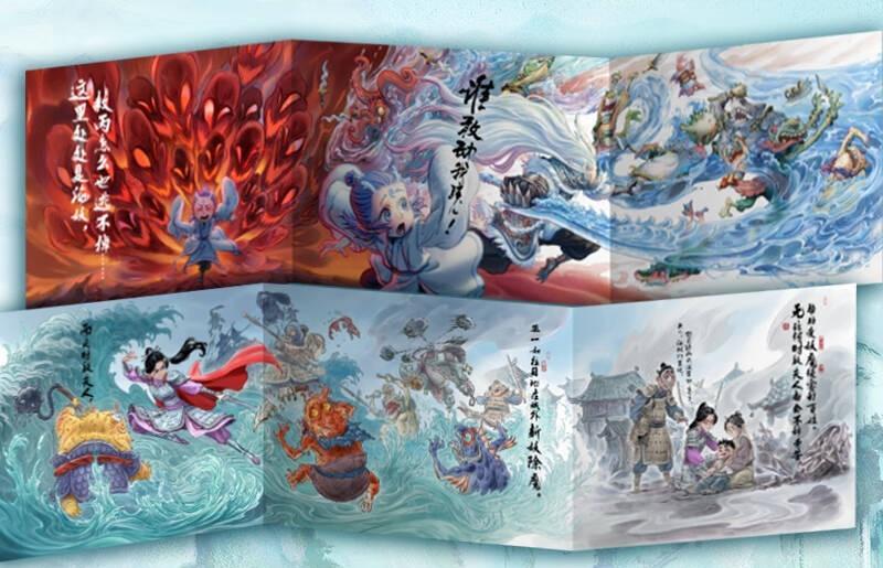 哪吒与殷夫人的母子互动、玉虚宫的修仙日常、土肥坡的厨神之战、石矶娘娘的少女心、申小豹化形成人的努力、东海龙宫中的父子温情……在画师笔下,银幕上未能上演的故事仍在继续。