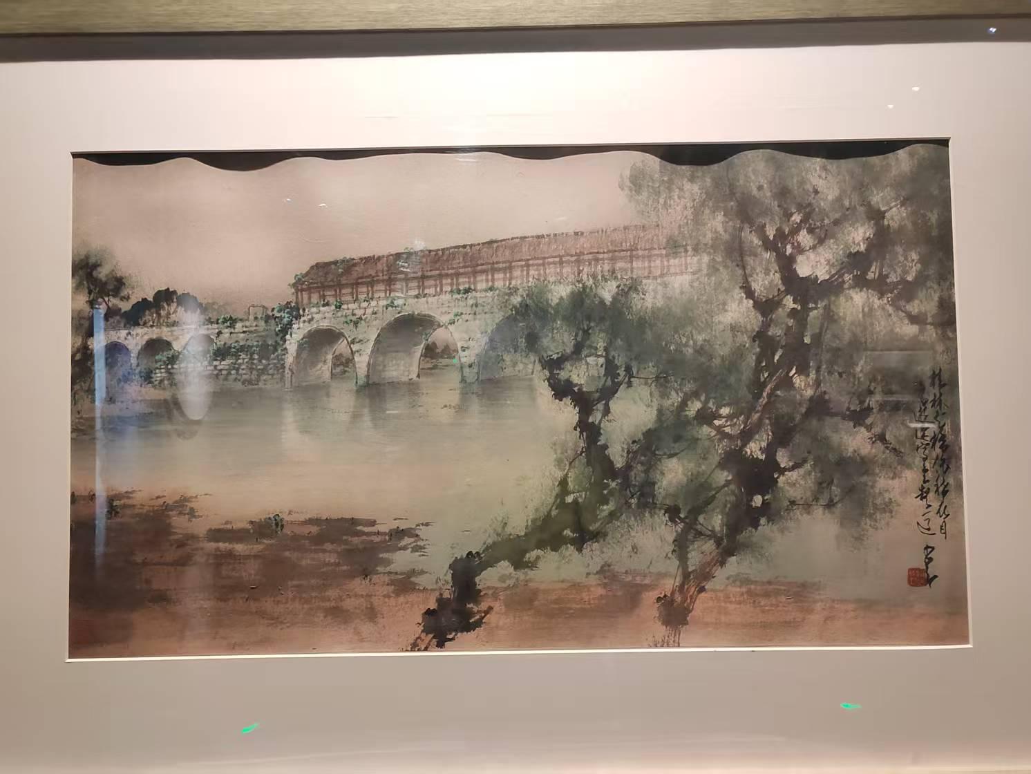 陈玉莲介绍,展览中展出的画作涉及国内多个省份,如赵少昂《花桥烟雨》、黎雄才《漓江所见》中的广西,黎雄才《云南曲靖沾益道中》中的云南,黎雄才《盐井》《五通桥所见》中的四川,关山月《六朝飞天》中的甘肃,黎雄才《麒麟河畔所见》中的青海,黎雄才《哈密道上之卖瓜者》中的新疆,等等。一景一物,都诉说着光阴的故事,也绘就了引起无数人共鸣的“诗与远方”。