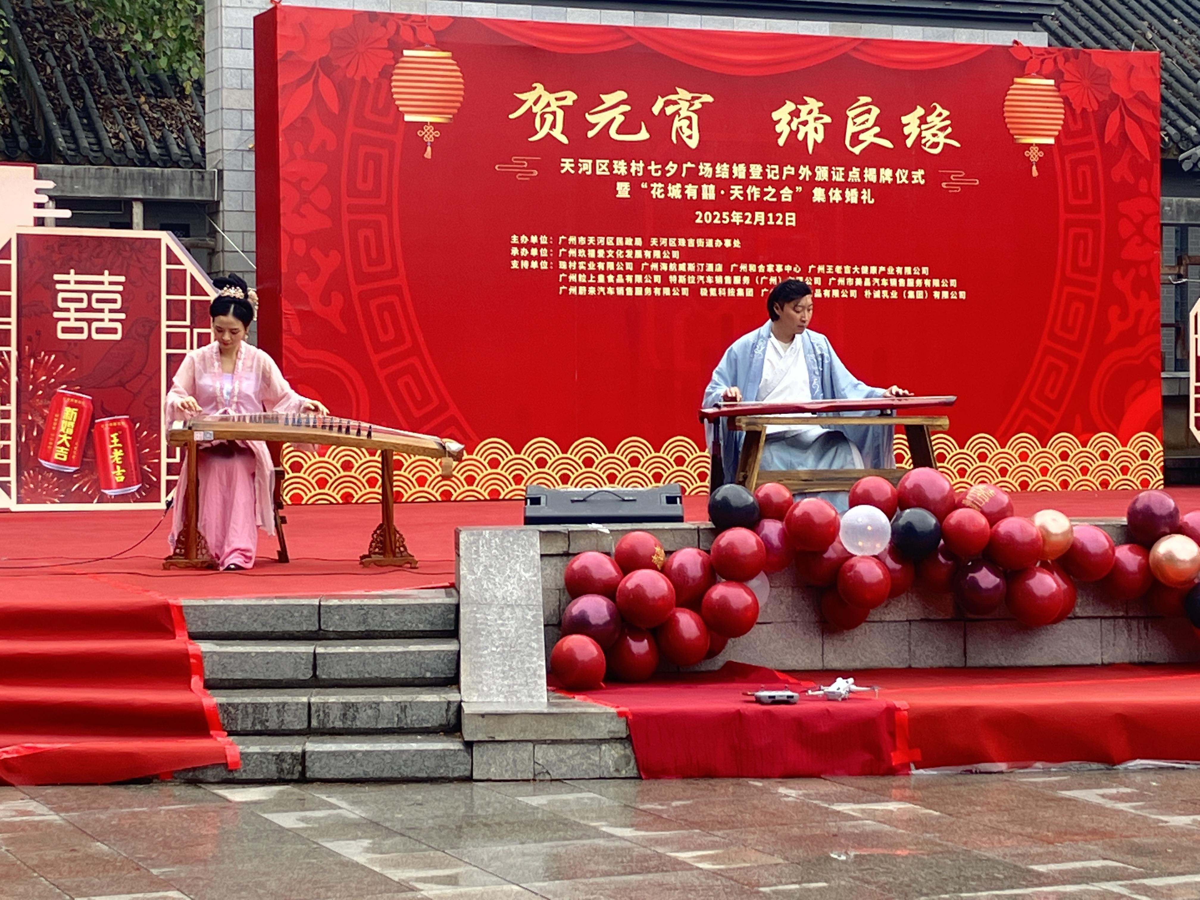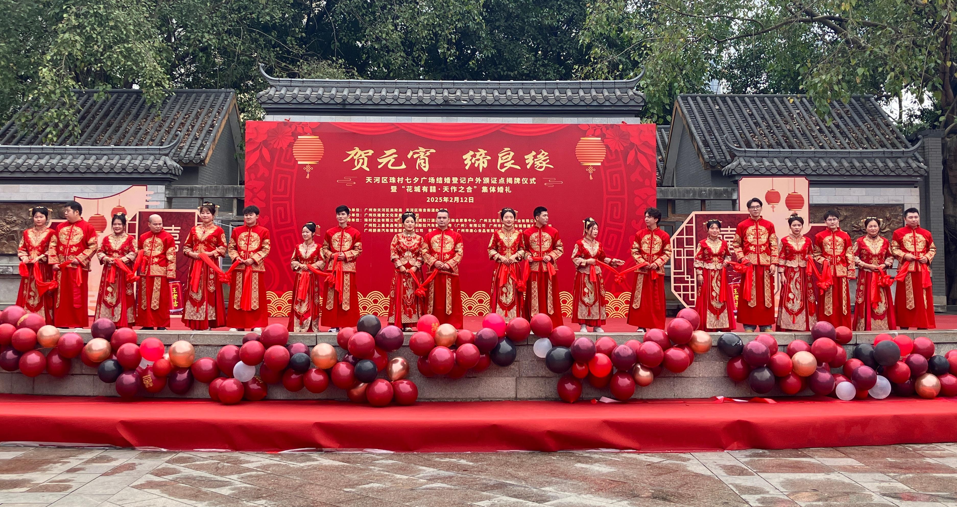 信息时报讯(记者 章乔晖)2月12日,正值元宵佳节,由广州市天河区民政局、珠吉街道办事处主办,广州市玖禧爱文化发展有限公司承办的“贺元宵·缔良缘”天河区结婚登记户外颁证点揭牌仪式暨“花城有囍·天作之合”集体婚礼活动在珠村七夕文化广场举行。这是继广州市员村工人文化宫穗港澳双创区域、天德广场外,天河区设立的第3个结婚登记户外颁证点,也是天河区积极推进婚俗改革进村居工作的有效成果。