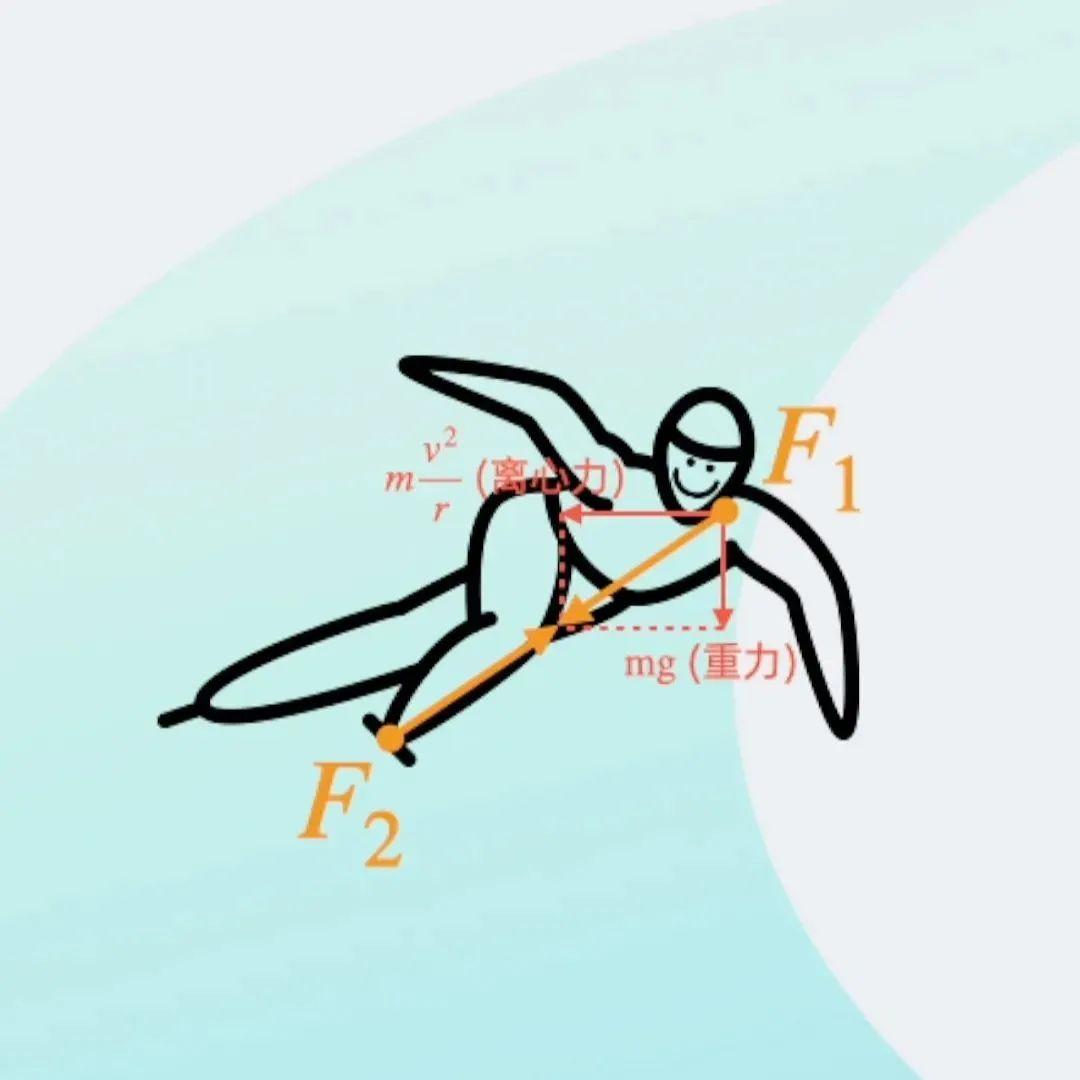 运动员会紧贴弯道内圆弧雪线,身体倾斜,左肩明显低于右肩,双脚交叉压步蹬冰。如果在速度、姿势和路线选择上稍有不慎,就会被后面的对手超越。你知道,运动员在过弯时,为什么要大幅度倾斜身体却不会摔倒吗?