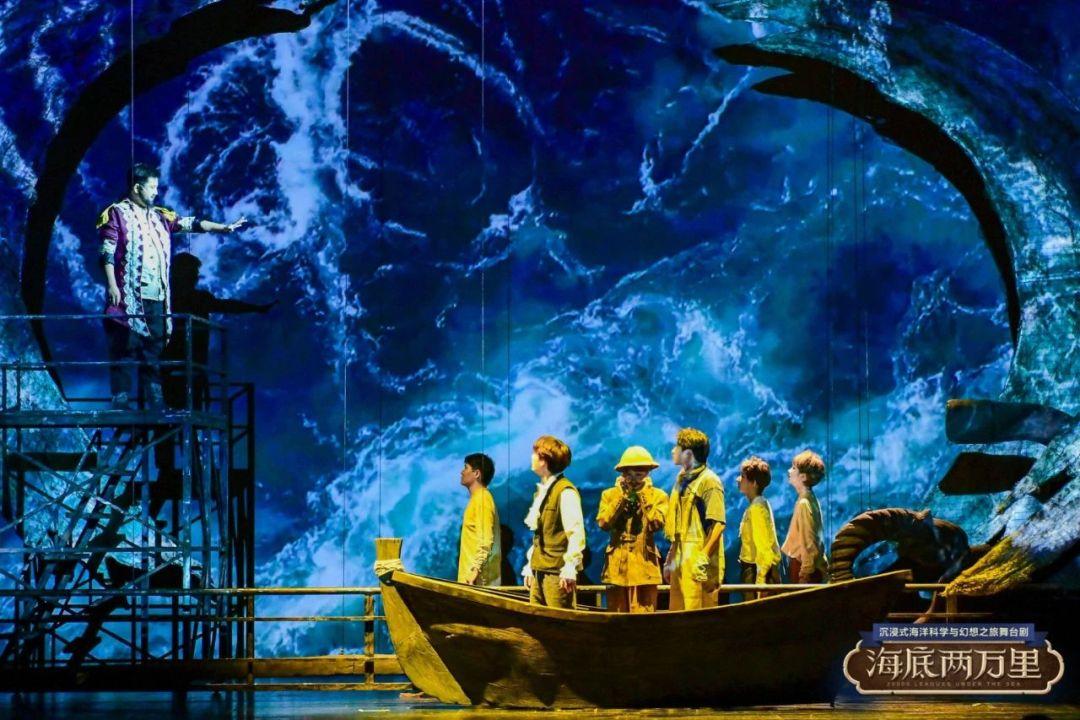 舞台剧《海底两万里》还原了原著中主要的五次险情,通过多媒体及大型海洋生物装置,让观众沉浸在巨大的海底世界之中,身临其境地感受海洋科幻世界的奇妙与惊险。培养青少年观众对正义的追求,对科学世界的好奇,对未知知识的渴望,传递“人类的思想是创造的潜力”之主题。