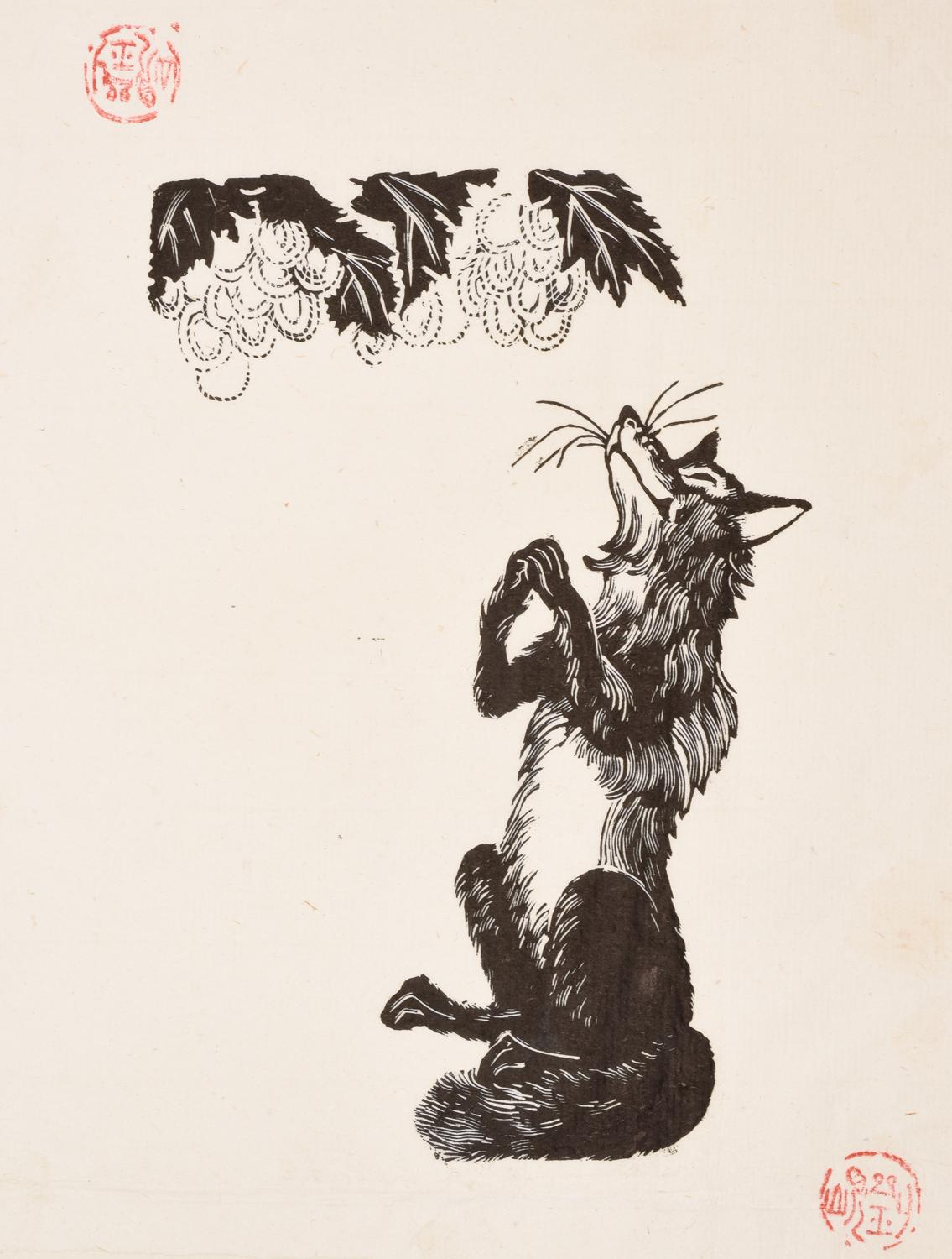 二十世纪五六十年代 刘岘 啄木鸟、鹿、青蛙、松鼠小品(木刻原版b面)
