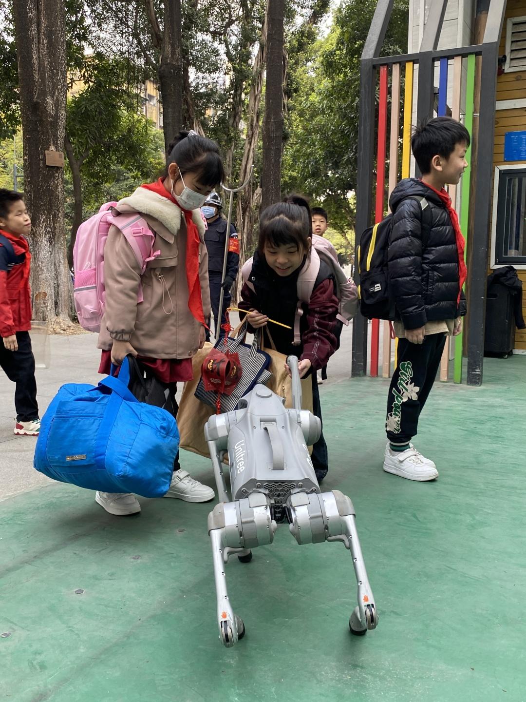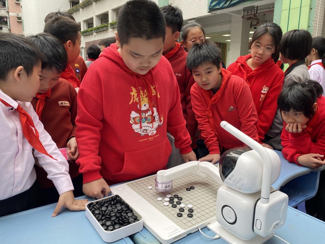 在开学日的思政第一课上,华侨小学汇龙学校党支部书记安然强调了传统文化与科技创新的重要性,鼓励学生们树立文化自信。本次活动也融入人工智能等科技元素,比如机器狗在校门口迎接学生们返校,现场互动摊位中学生还可与人工智能切磋象棋和围棋。