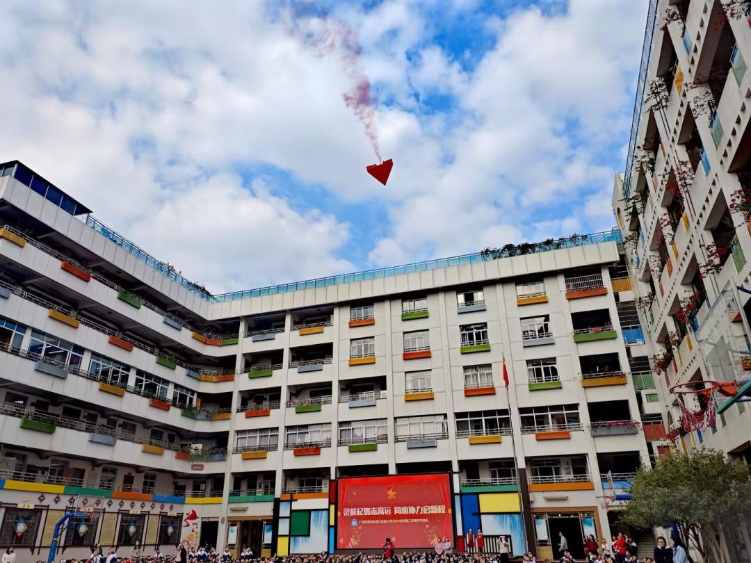 活动最后,神秘特邀嘉宾“无人机”绕场扶摇直上,表演飞行拉烟,引发全场学生欢呼。据介绍,“无人机”飞行寓意“志存高远,一飞冲天”,希望同学们在见证知识的力量、科技的魅力的同时,燃起对科学的热爱和追求。