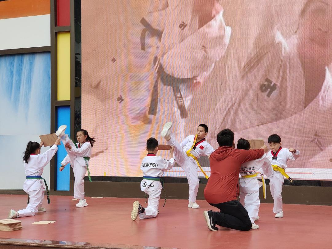 节目汇演上,结合今年将于粤港澳大湾区举办的全运会主题,滨小少年们展演了“体育总动员”,将篮球、羽毛球、跳绳、跆拳道与现代街舞融合,迸发出力量与动感的火花。