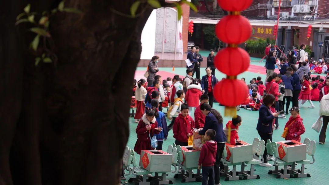 新学期的第一天,小北路小学的校门口热闹非凡。同学们怀着激动的心情,伴随着热闹的舞狮锣鼓声走进校园,准备开启这充满期待的新学期。