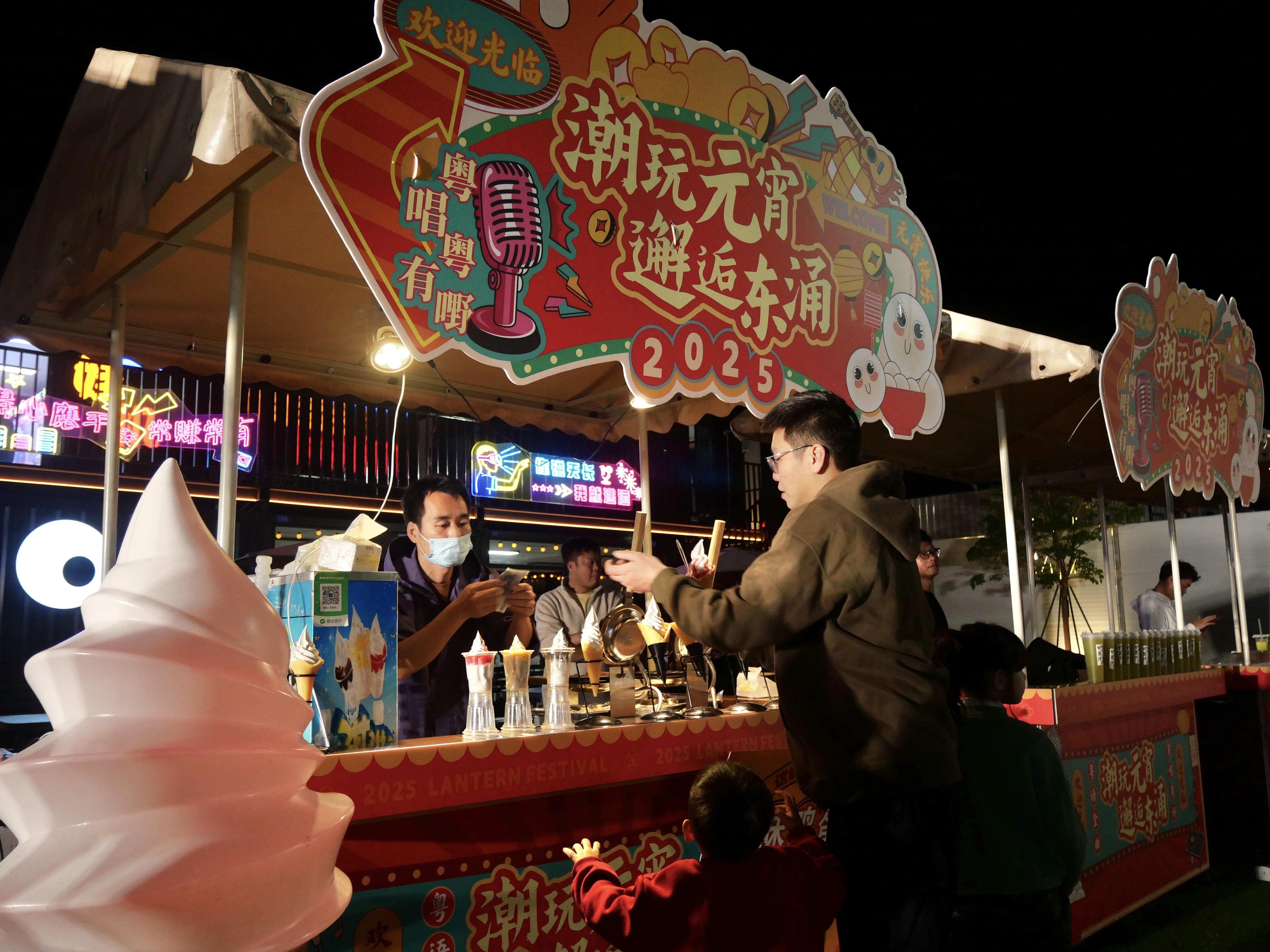 除了粤语金曲歌唱大赛,现场还有元宵游园活动。猜灯谜、做汤圆、逛潮玩市集……各种地道港式小吃以及各类潮玩diy交融,活动现场不仅洋溢着浓厚的节日氛围,更显“港味”十足,“港风”满满!