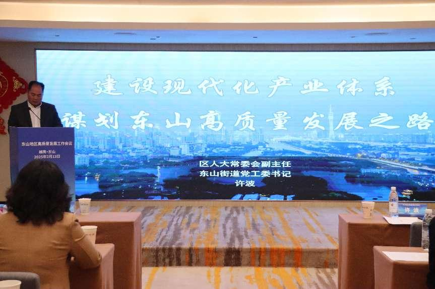 信息时报讯(记者 佘铄嘉 通讯员杨佩儒 钟悦卿)2月13日,越秀区东山街召开2025年东山地区高质量发展工作会议,区有关单位、辖内企业、金融机构、街道干部合计120人参加。会议现场传达学习全省、全市、全区高质量发展大会精神,总结了东山街过往一年工作情况,介绍本年重点工作思路,倡议广大企业家积极参与政企银联动,和街道一起共同招商,让更多优质企业落户东山、抱团发展,奋力书写越秀现代化建设新篇章。