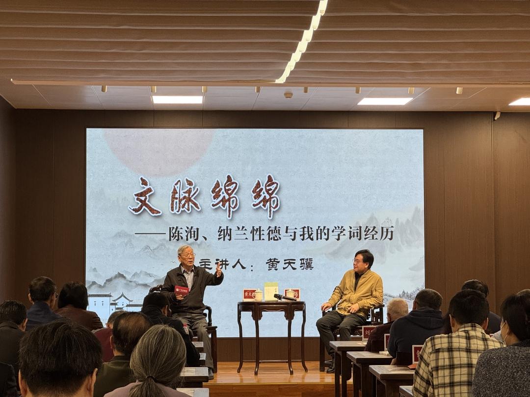 作为本次活动的重要环节,“广雅讲坛”于活动当天正式开讲。中山大学中文系教授、《广雅》顾问黄天骥以《文脉绵绵——陈洵、纳兰性德与我的学词经历》为题,结合自身学术生涯,讲述了其自身堪称戏剧性的学词经历。